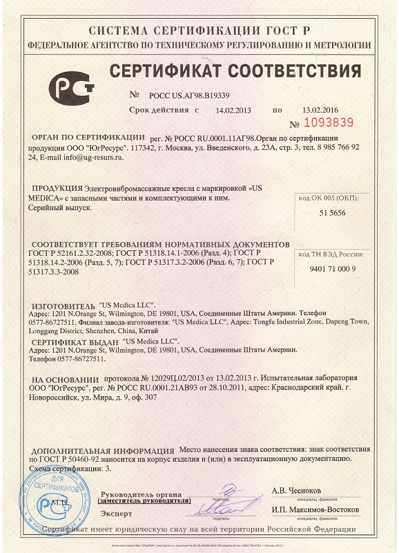 - 3 года гарантии на все массажные кресла от компаний Yamaguchi, US Medica, Anatomico.